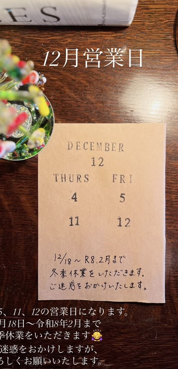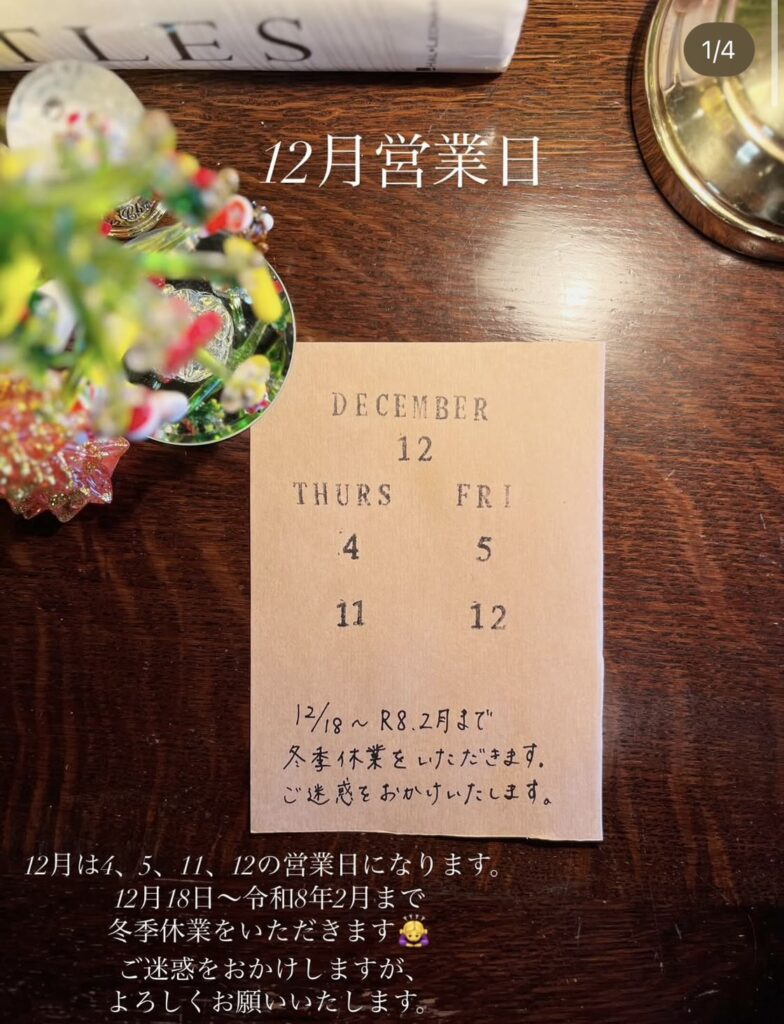 その後は令和8年2月まで冬季休業をいただきます。